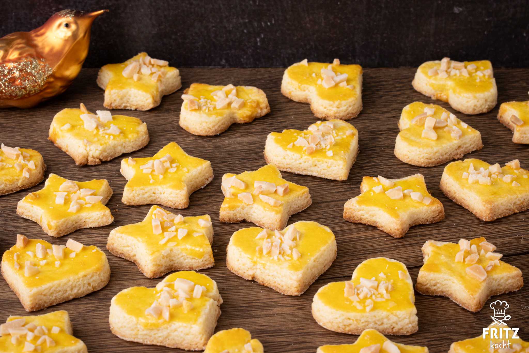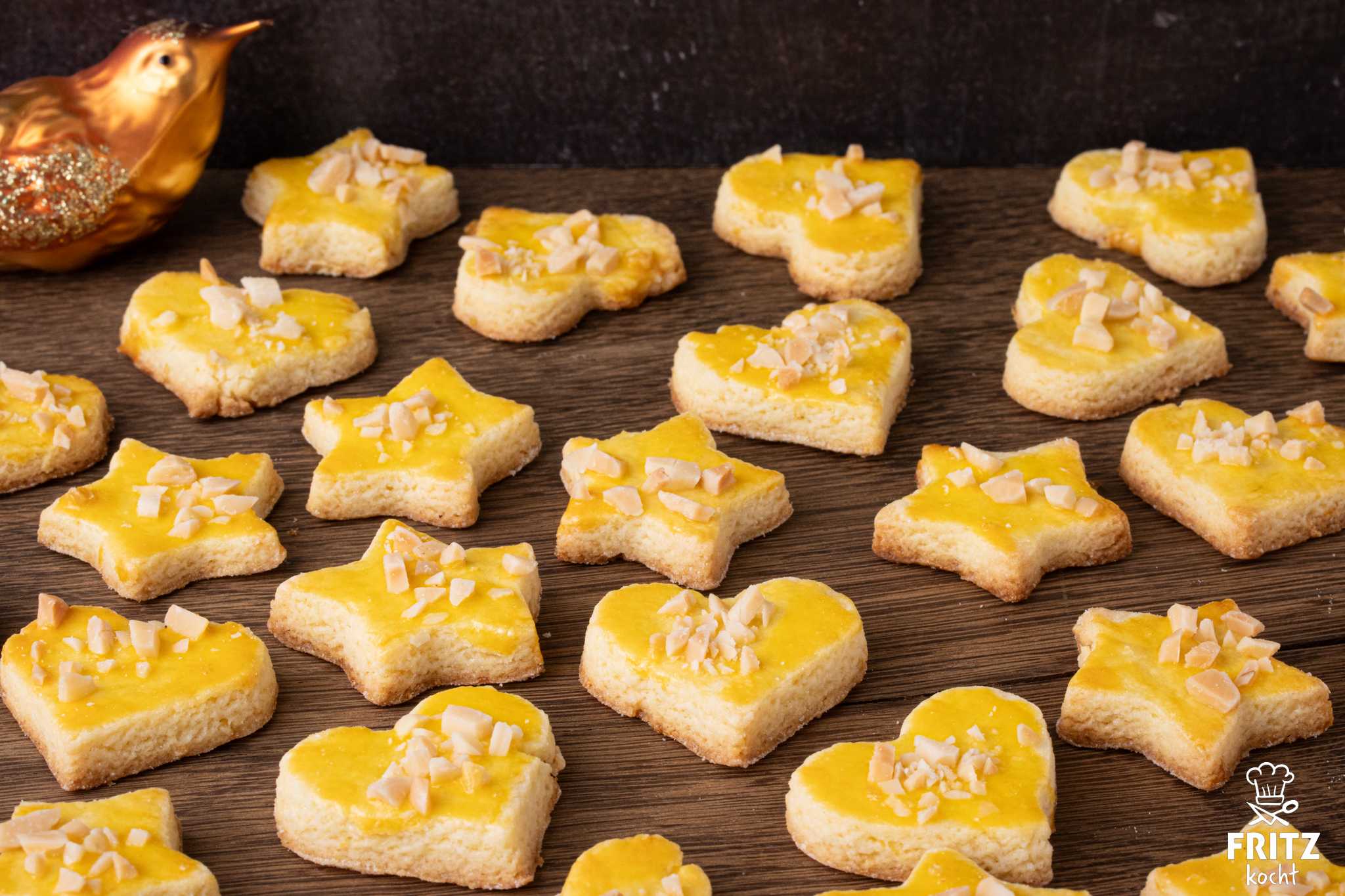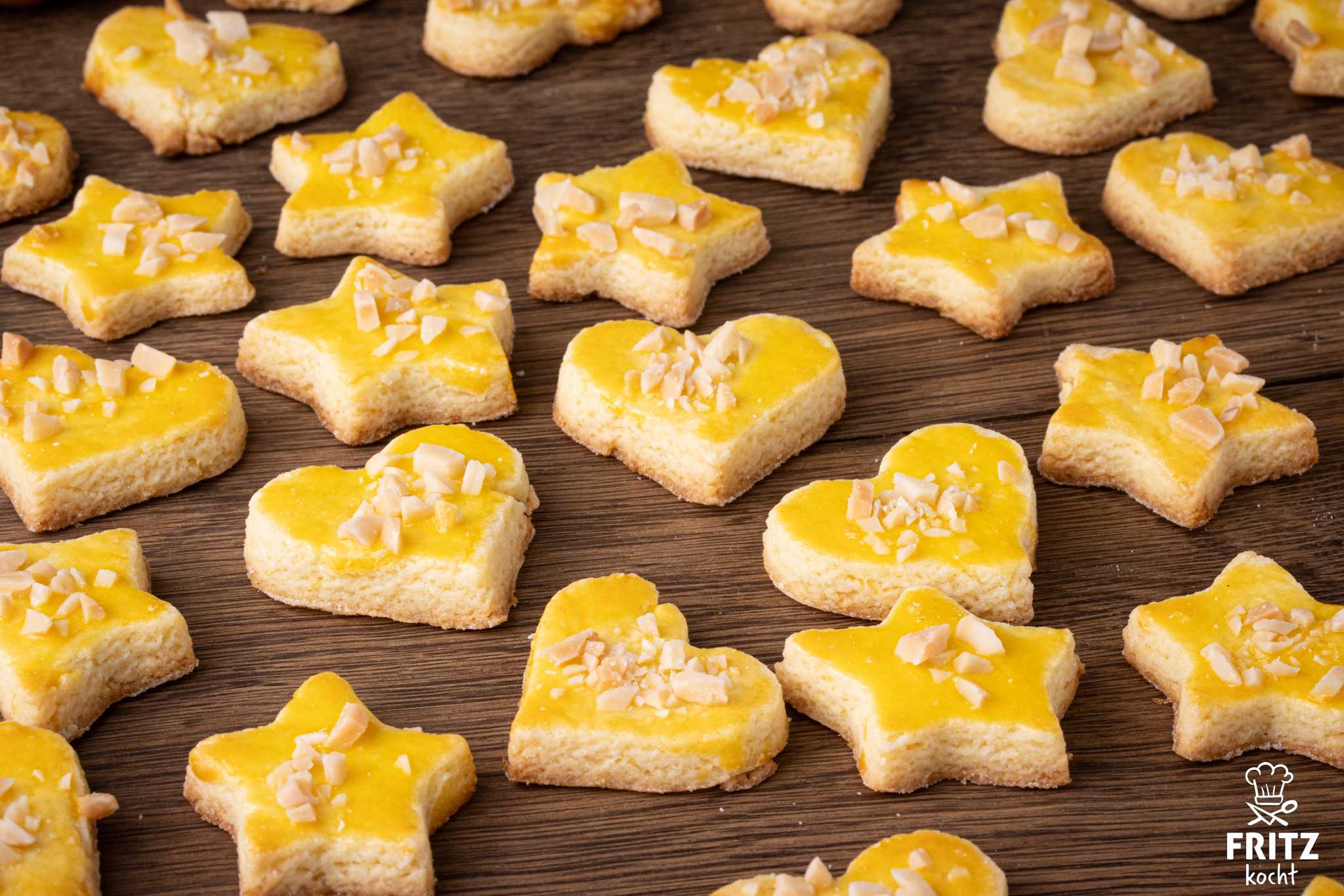 - 150 Gramm Mehl, 60 Gramm Butter, 60 Gramm Zucker, 2 Eigelb, abgeriebene Schale von 1 Zitrone und die 1 Prise Salz zu einem Teig vermischen. Das klappt mit den Knethaken des Handmixers, einer Küchenmaschine oder mit den Händen prima. Wenn der Teig noch zu krümmelig ist, gebt ihr etwas Zitronensaft oder Wasser dazu.