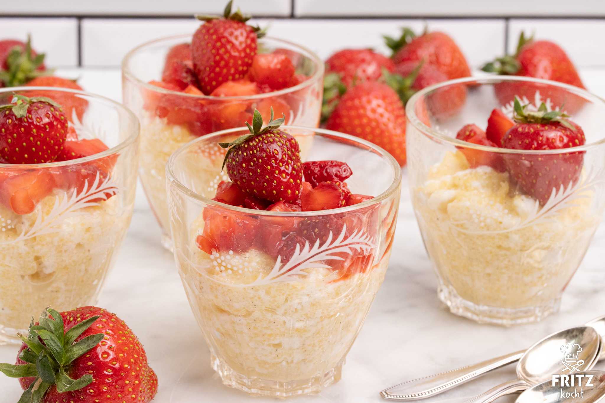 - Die Erdbeeren waschen, klein würfeln und über den Pudding geben.Ihr könnt auch Zimt und Zucker darüber streuen oder Rhabarbersirup oder Himbeersirup oder Himbeersauce oder frisches Obst, Obstsalat, Apfelmus.....Das Video zu diesem Dessert findet ihr auf meinen Social Media Kanälen.