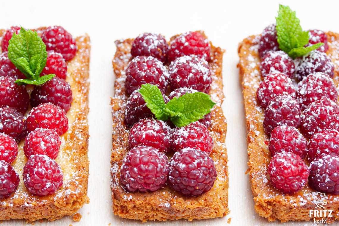 - In dieser Zeit die 500 Gramm Himbeeren waschen. Den Kuchen erkalten lassen und die Beeren darauf verteilen. Wer mag mit Minze und Puderzucker dekorieren. Ich finde, dass der Kuchen gut durchziehen und kühlen darf und ein oder zwei Tage später noch besser schmeckt ;)