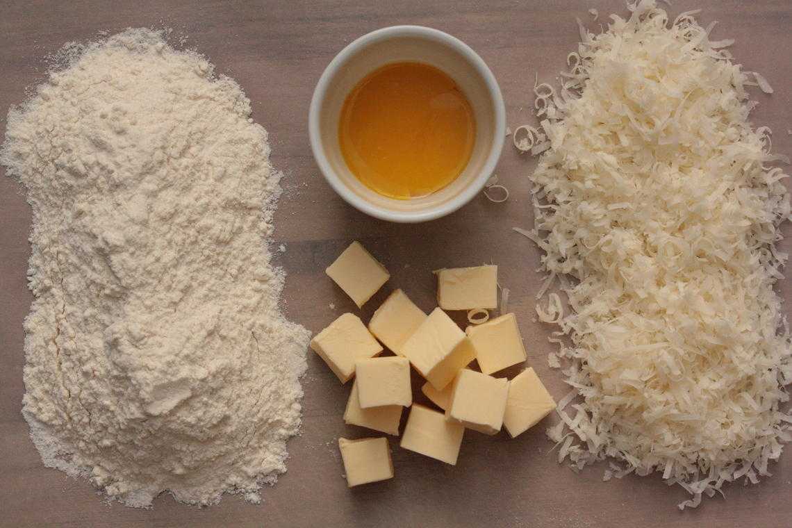 - Zutaten für den Teig vermischen und verkneten, auf einer bemehlten Fläche mit dem Nudelholz ca. 1 cm dick ausrollen und entweder Kreise ausstehen oder Stangen schneiden, wie ihr Lust habt.