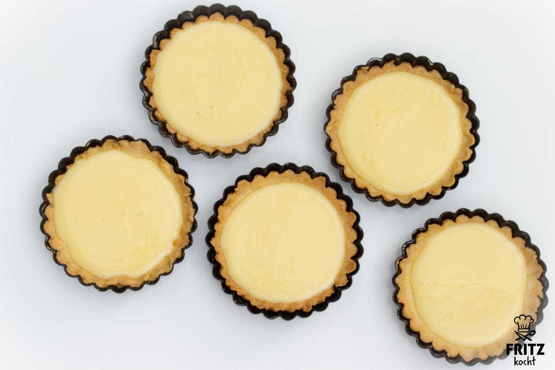 - 125 ml Sahne aufkochen, Zitroneneiergemisch dazugeben und zur Rose abziehen. Das heißt, das Gemisch darft nicht mehr kochen. Es darf nur so heiß werden, dass eine tolle Creme entsteht. Wenn ihr in die Creme hineinpustet, entstehen Wellen, die an Rosenblätter erinnern sollen. Deshalb heißt das "zur Rose abziehen" Ich kann das allerdings nicht so erkennen.... Diese Creme verteilt ihr auf eurem gebackenen Mürbeteig und backt ihn bei 120 °C für 30 Minuten in die Ofenmitte.